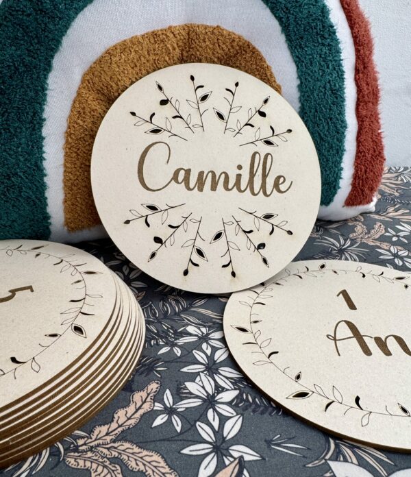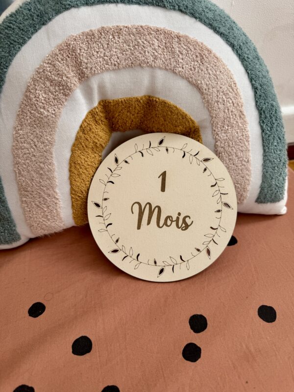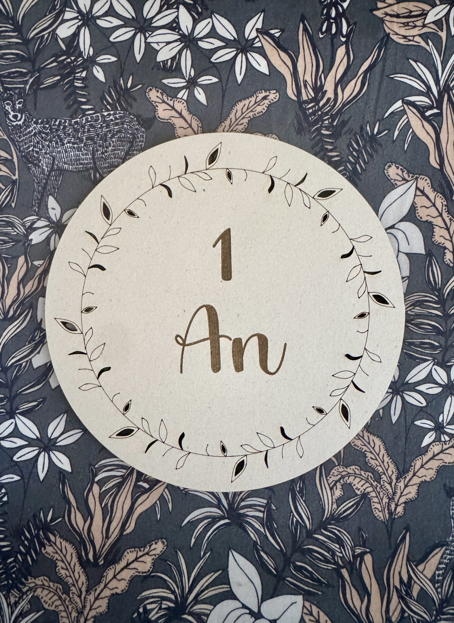 Cet ensemble de cartes étapes est composé d’une carte avec le prénom du bébé, de 11 cartes allant de 1 à 11 mois, et d’une carte 1 an.